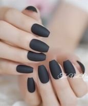 Coffin Fake Nails Black Matte Frosted Press On Nails Coloured Medium-Long Wholesale False Nails 22-24pcs (Glue not included)