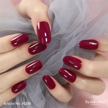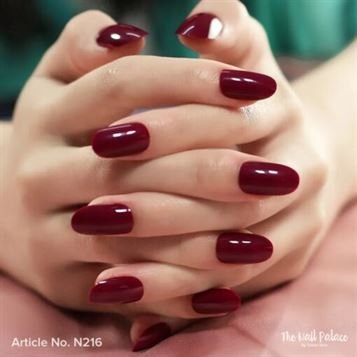 Oval Dark Glossy Pinkish Red Color Pure Fake Nails Art Full Cover Press On Nails Manicure Small-Medium Uv Gel