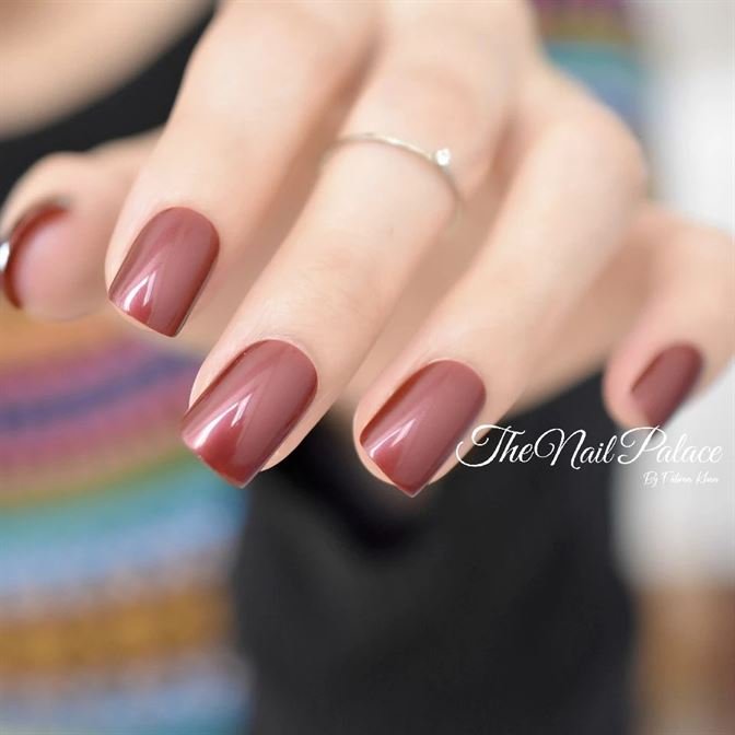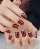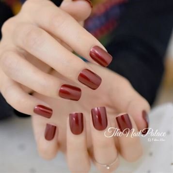 Shiny Glossy Red Wine Fake Nails Short Square Dark Color Beautiful Ladies Decoration Nail Tips 22-24pcs (Glue not included)