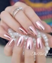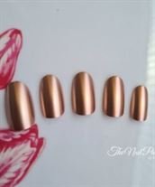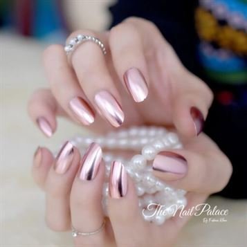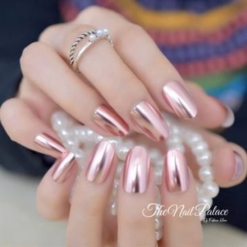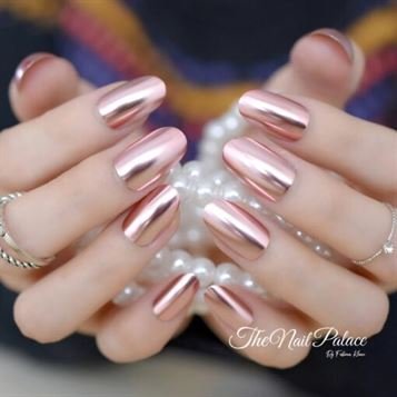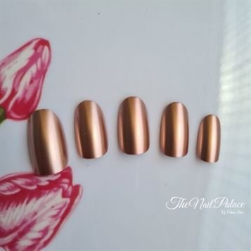 Matte Metal Nail Art Tips Light Pink Metallic Mirror Pre-designed Fake Nails Fairy Oval Beautiful Shiny Ladies Nails Small-Medium 22-24pcs (Glue not included)